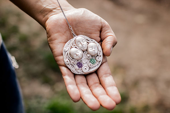 This piece of jewellery represents us, The little flowers are my girls’ favourite colours, and each of them contains some of my preserved breastmilk.